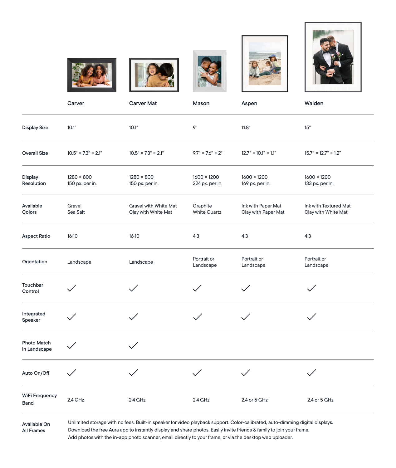 Bevor wir auf die einzelnen Funktionen eingehen, finden Sie hier einen direkten Vergleich unserer aktuellen Rahmenmodelle, damit Sie schnell erkennen können, welches am besten zu Ihren Bedürfnissen passt: