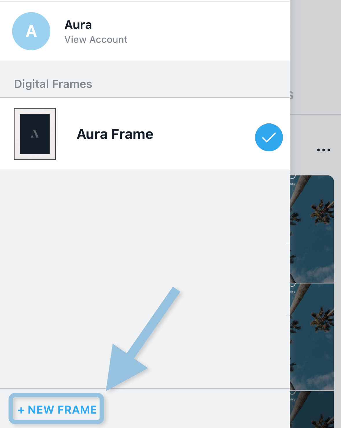 Don't worry - this won't actually add a new frame! Tap your frame name at the bottom of the app home screen. Click "+ New Frame" and follow the steps to "Set Up A New Frame." Once your frame is connected to WiFi your photos will start to display immediately.