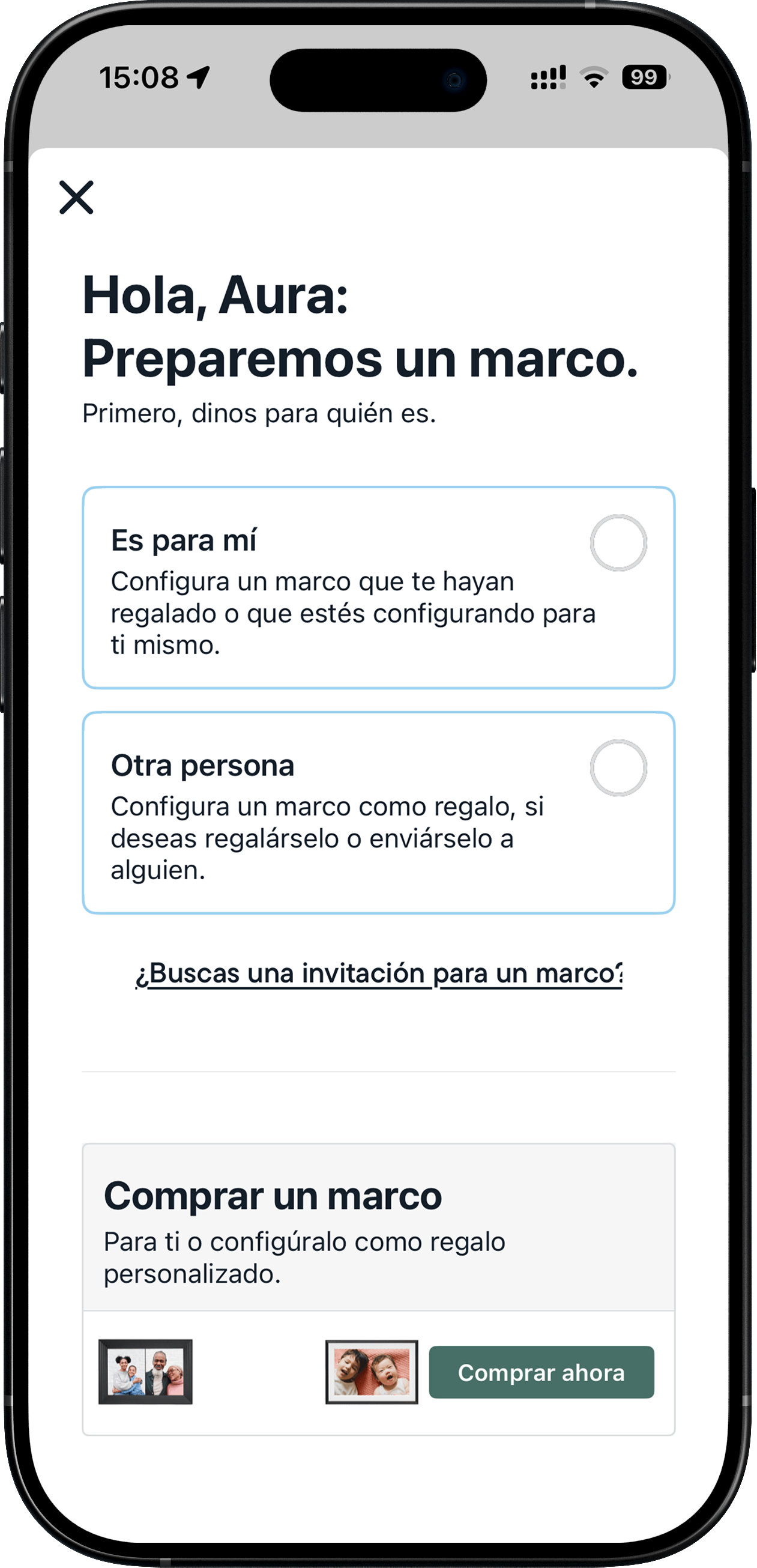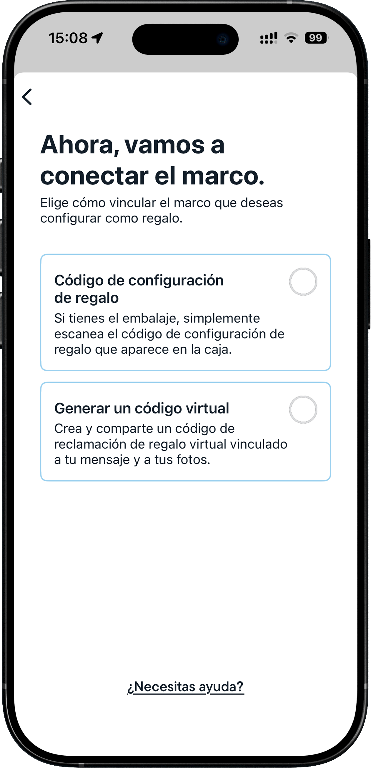 Aura Frames ofrece dos métodos convenientes de preparación del regalo para adaptarse mejor a la configuración tuya y del destinatario. Por favor selecciona solo uno método, ya que usar ambos puede causar problemas de configuración.