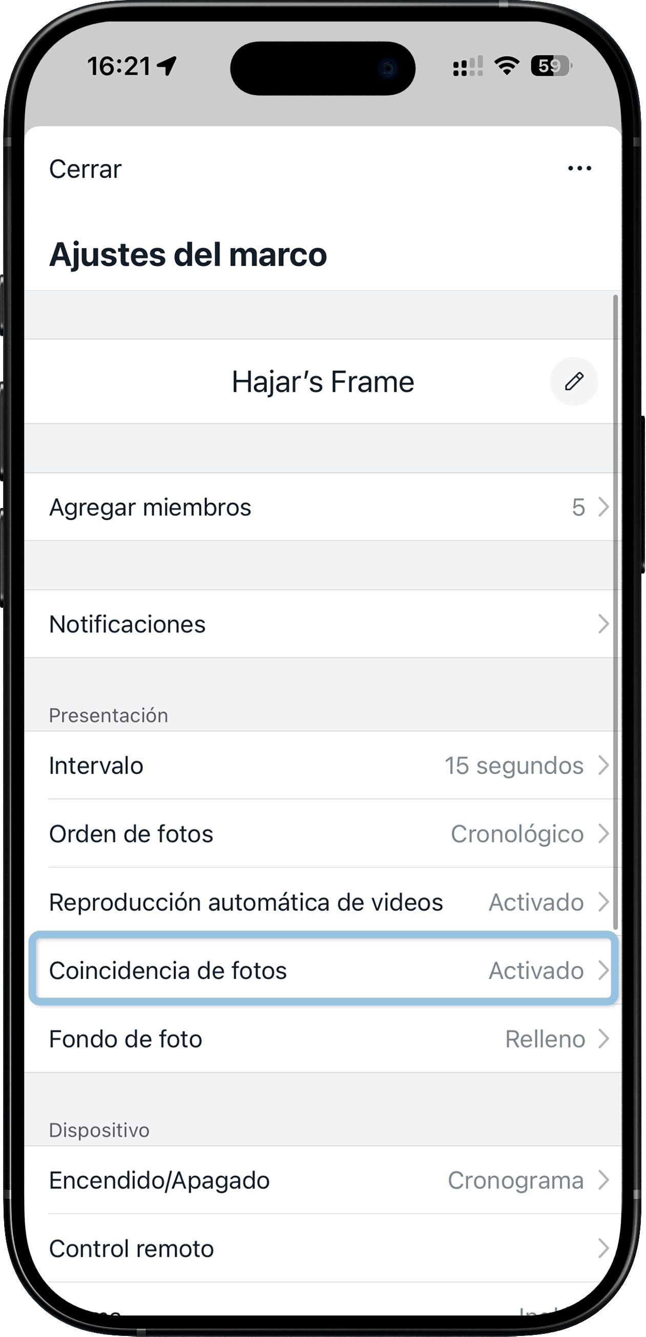Ahora puedes cambiar la opción “Coincidencia de Fotos” a DESACTIVADA.